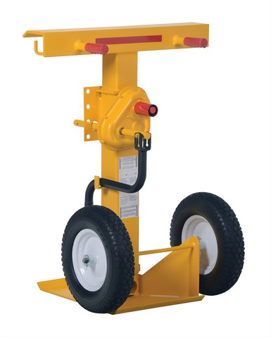 Vestil is an industry leader in manufacturing industrial material and various tool shop handling equipment. These products can increase productivity improve workplace ergonomics and decrease worker injury. Trailer Stabilizing Jacks are used to prevent up-ending semi-trailers when they are not connected to a tractor during loading and unloading operations. Also used to level trailers parked on sloped ground and to prevent landing gear from sinking into a soft surface. Flush-type zerk fitting for lubricating ACME screw. Powder coat safety yellow finish. Includes reflective collar for visibility at night. Specifications