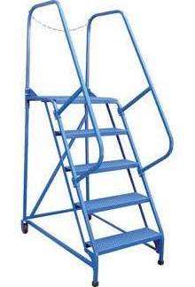 Vestil is an industry leader in the manufacturing of industrial material handling equipment. We stand behind our products and undersatnd the customer requirements and find the best solution for their application. We deliver value to our customers by engineering new designs and products which increase productivity improve workplace ergonomics and decrease worker injury. Portable Maintenance Ladder for use around warehouses hardware stores or inventory rooms. Tilt the unit to allow for portability. Constructed of square tubing framework. Features removable hand railing access chain perforated steps and an industrial blue powder coat finish. Specifications