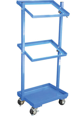 Vestil is an industry leader in the manufacturing of industrial material handling equipment. We stand behind our products and undersatnd the customer requirements and find the best solution for their application. We deliver value to our customers by engineering new designs and products which increase productivity improve workplace ergonomics and decrease worker injury. This unique Multi-Tier Stock Cart makes it easy to organize and reach parts. Tilting shelves allow easy access to baskets. Ideal for stocking parts in work stations. Casters allow the parts to be moved to wherever they are needed. Shelf angle is locked with a single handle design easier on the hands and allows user to apply more torque for a tight grip handle is also indexable allowing for operation similar to a ratchet. Shelves include a lip on all four sides. The vertical uprights knock-down for more convenient shipping and storage. Overall cart size does not include baskets. Rolls smoothly on casters. Steel construction with a powder coat finish. Baskets not included. Specifications